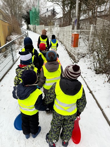 Egal zu welchem Ausflug, hier auf dem Weg in den Schnee, die neuen Westen werden immer angezogen.